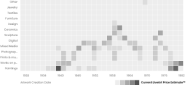 Explore the most prolific periods in an artist's career based on artwork production volume and current market value. It also segments these periods by category, offering insights into when the most valuable pieces were created in each category.