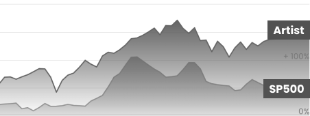 Compare the performance of the artist against established market benchmarks (S&P 500, Real estate, Dow Jones), or other artists.