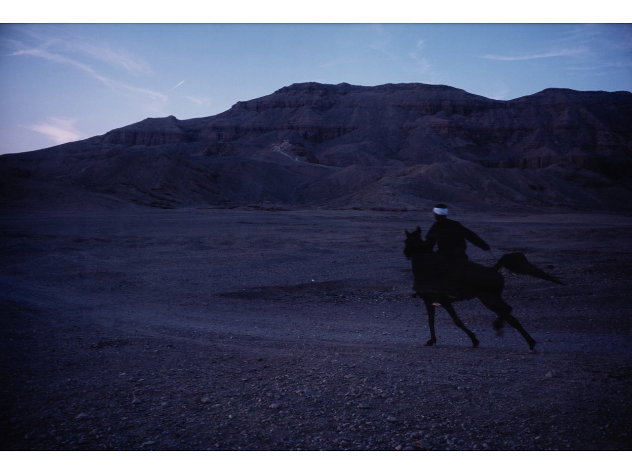 Jabalowe riding Roma into desert, Luxor, 2003