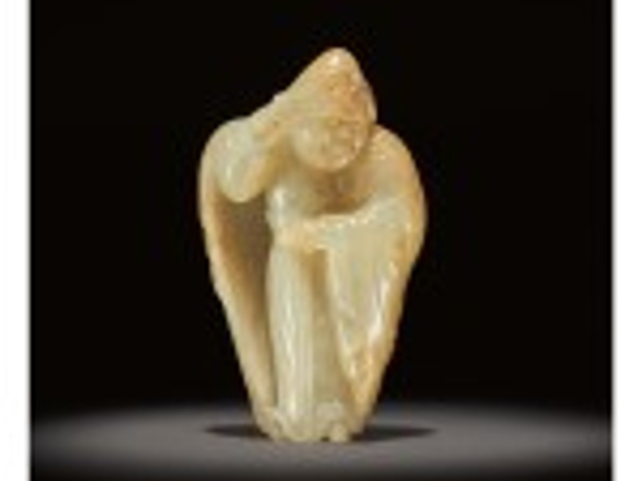 AN EXCEEDINGLY RARE WHITE AND RUSSET JADE CARVING OF A FOREIGNER