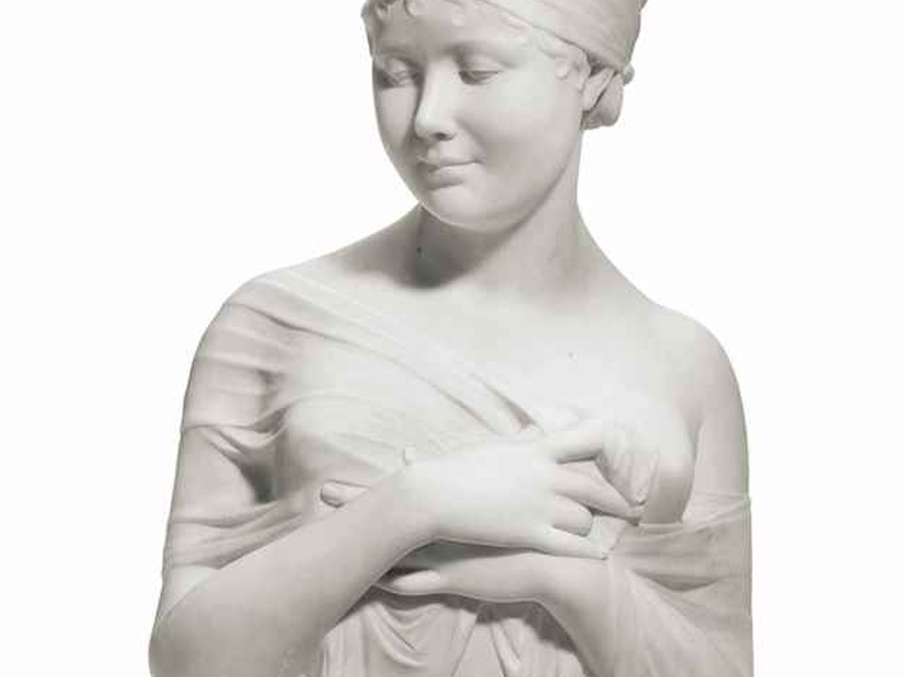 A FRENCH WHITE MARBLE BUST OF MADAME RECAMIER by Anonymous