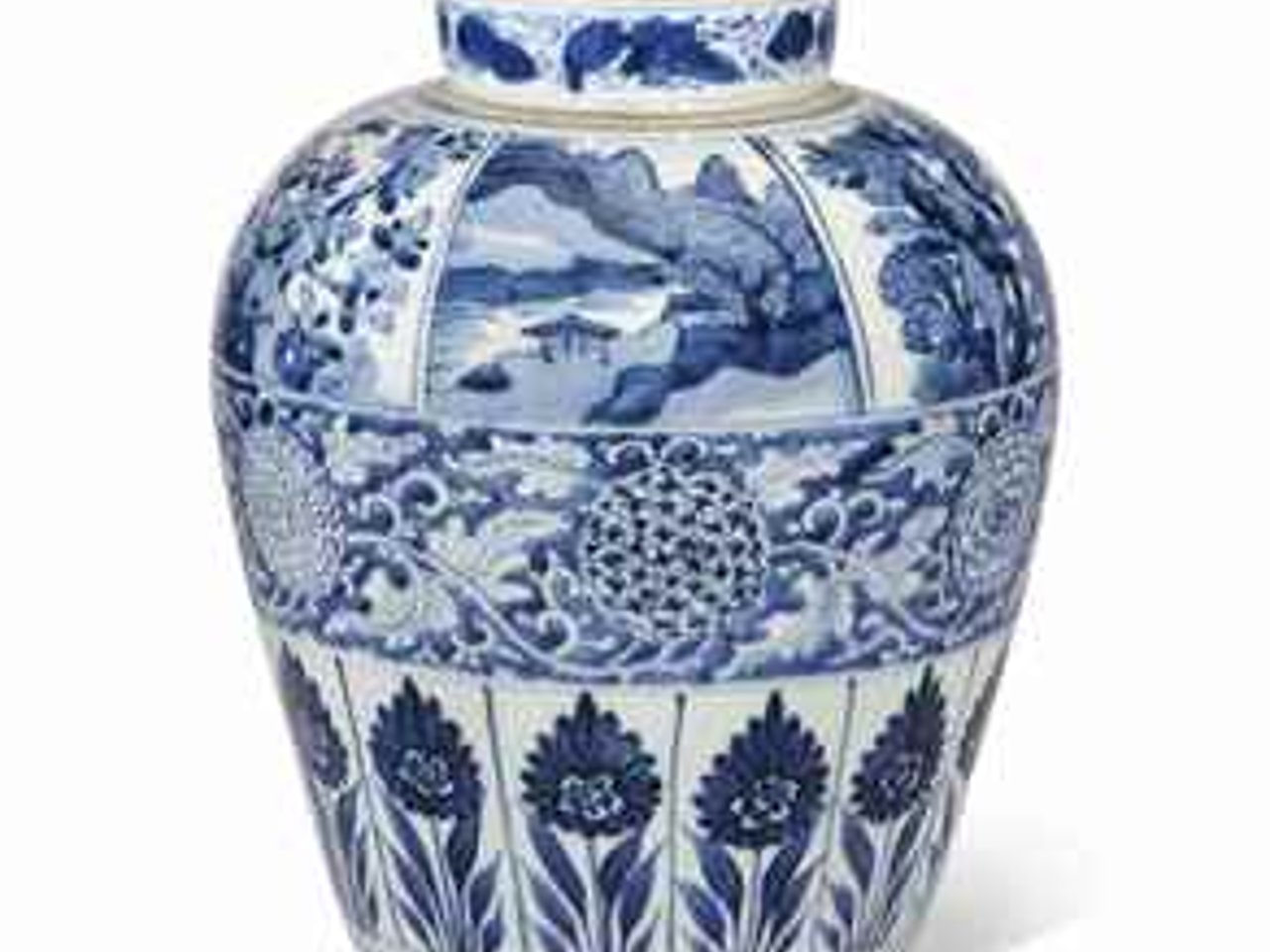 A BLUE AND WHITE JAR AND A COVER, 1640