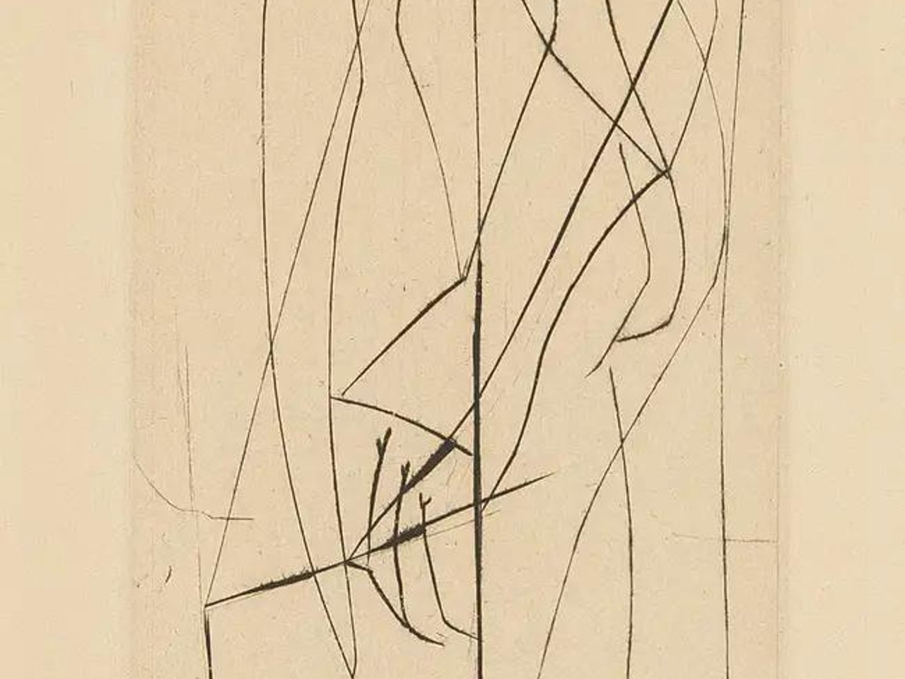 The rare drypoint, 1947, signed in pencil, Baer cites only this single signed impression, there was also an unsigned edition of 66, on heavy wove paper, as included in "Escrito/Pismo", the sheet edge folded as published, with full margins, sheet 365 x 325mm (14 3/8 x 12 3/4in) (unframed)