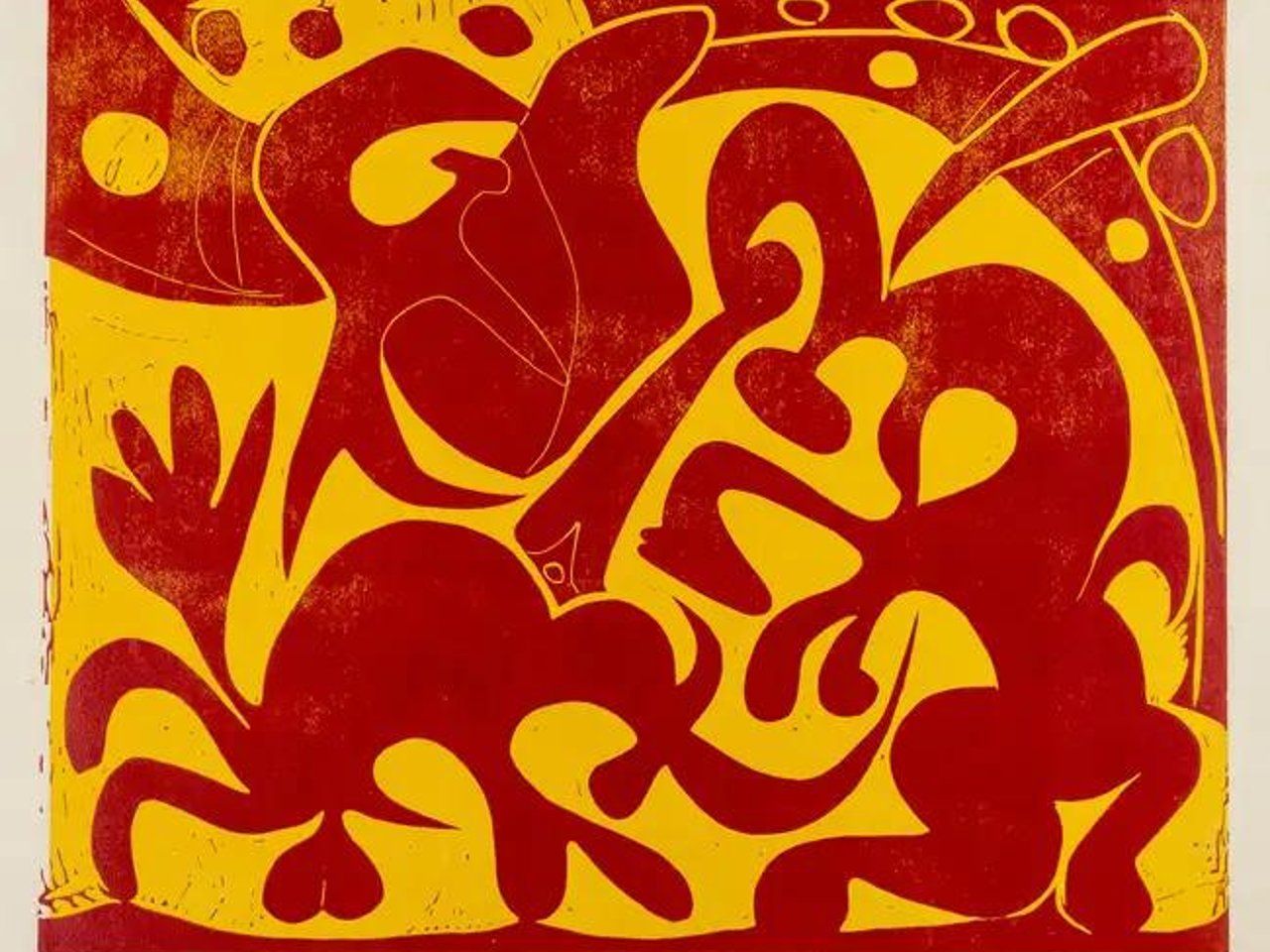 Linocut printed in red and yellow, 1959, signed and inscribed "Essai" in pencil, a trial proof aside from the edition of 50, on thick wove paper, with margins, sheet 621 x 750mm (24 3/8 x 29 1/2in) (unframed)