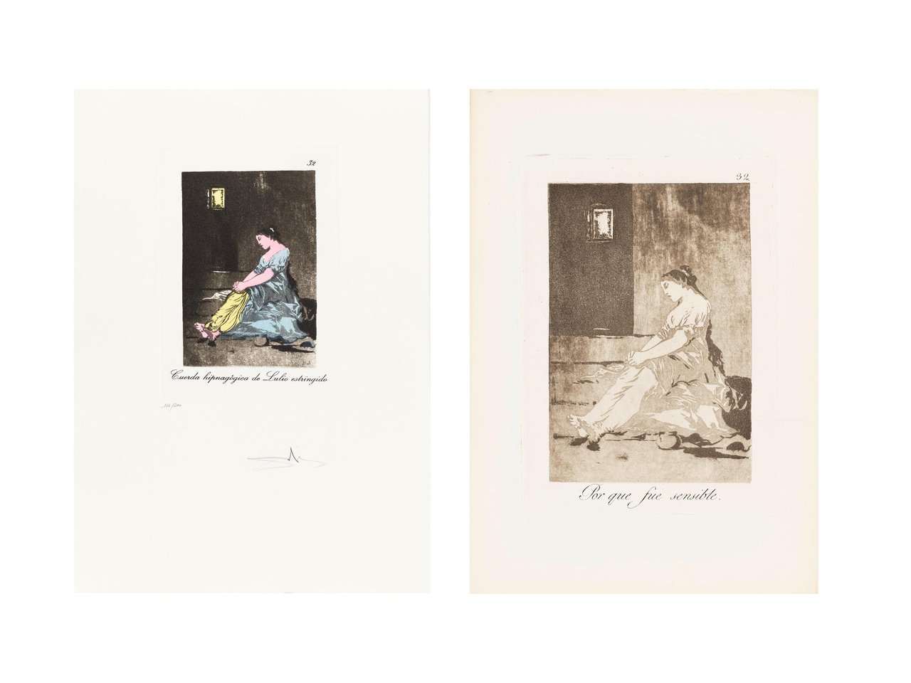 Plate 32, Cuerda hipnagogica de Lulio estringido from Les Caprices de Goya; plus FRANCISCO GOYA (1746-1828) Plate 32, Porque fue sensible (Because she was susceptible) from Los Caprichos (2 works) (Field 77-3-50: Delteil 69; Harris 67), 1977; 1799