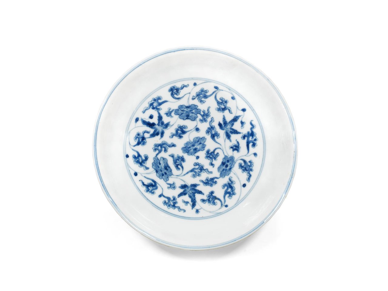 A blue and white 'floral' saucer dish