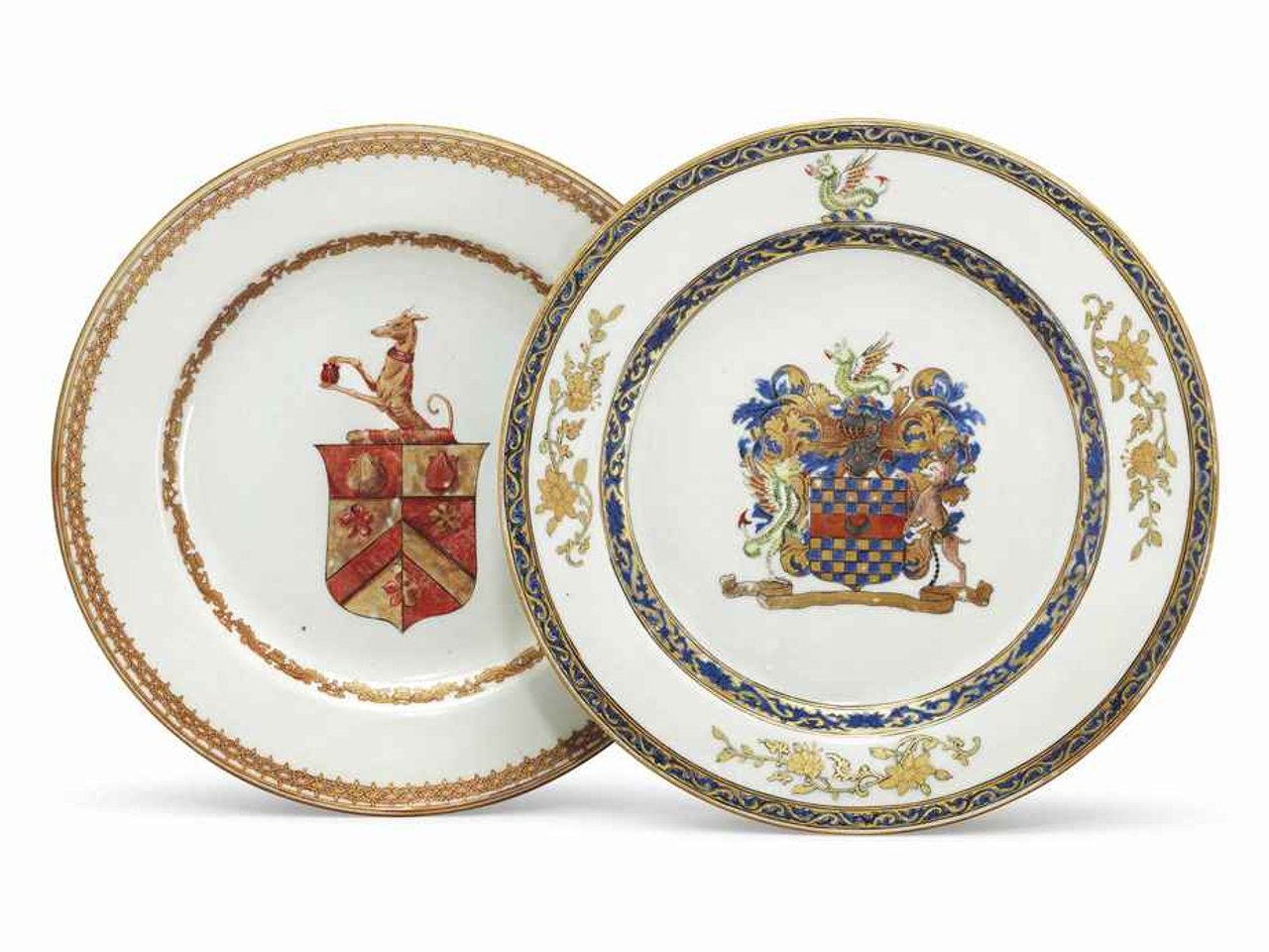 TWO ENGLISH MARKET ARMORIAL PLATES by Anonymous
