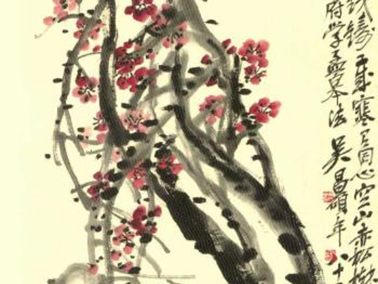 Red plum blossoms by Wu Changshuo