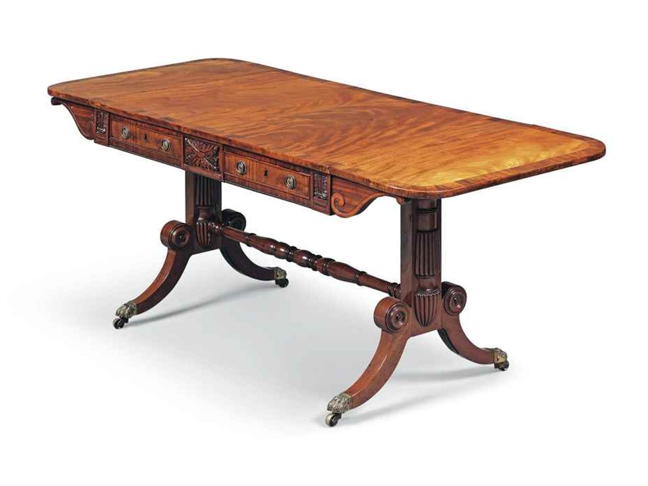 A GEORGE IV MAHOGANY AND ROSEWOOD CROSSBANDED SOFA TABLE by Anonymous