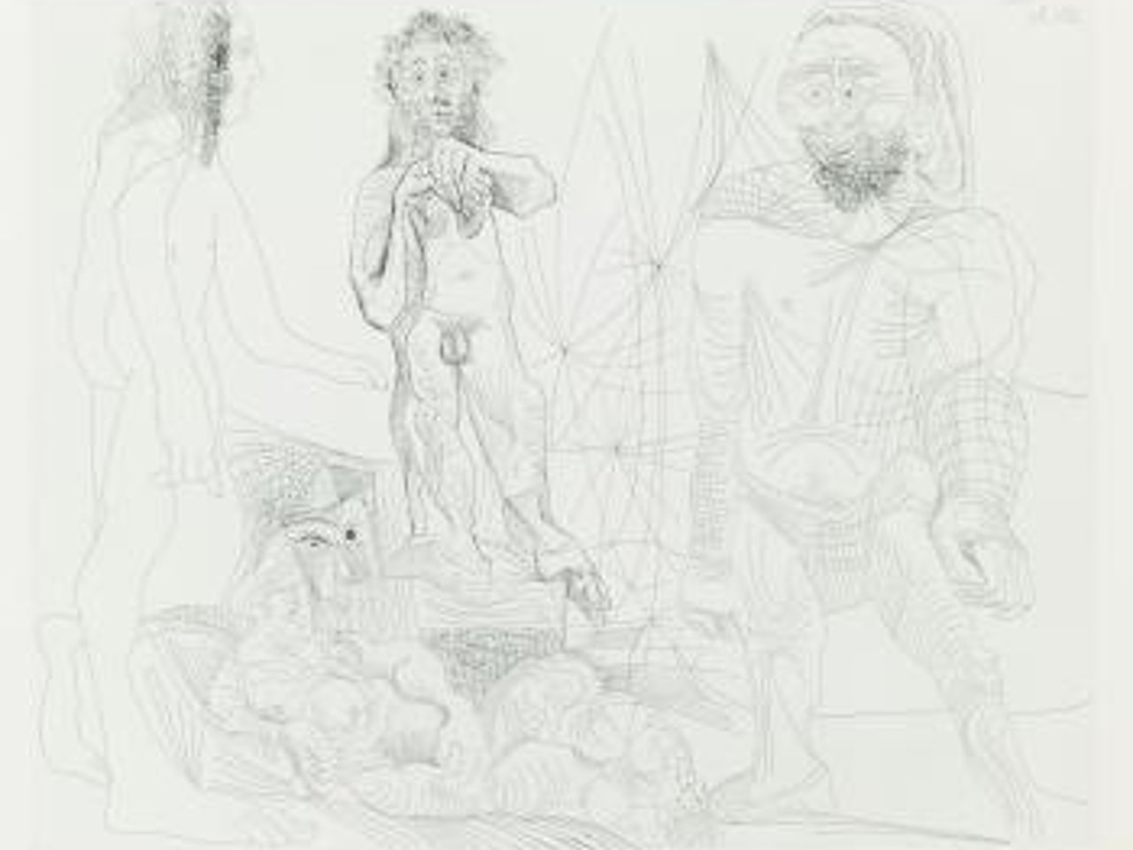 Vieux Modele-jeune Odalisque, Femme Androgyne, Berger Arcadien Et Pécheur A La Boina Pendante (Bloch 1863; Baer 1868) by Pablo Picasso