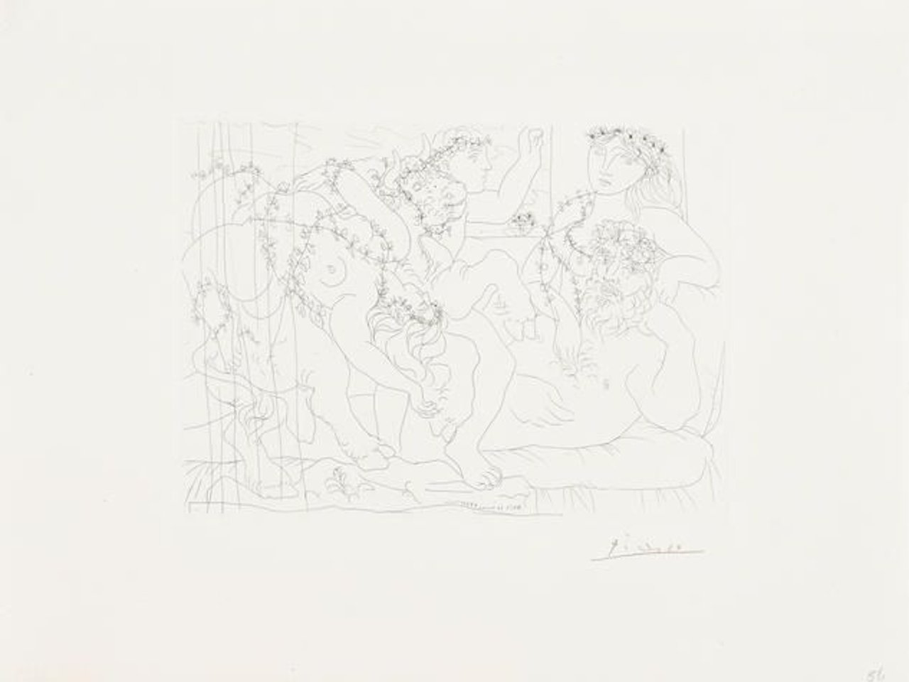 Le Repos du Sculpteur devant une Bacchanale au Taureau; from La Suite Vollard (B. 165; Ba. 318), 1933