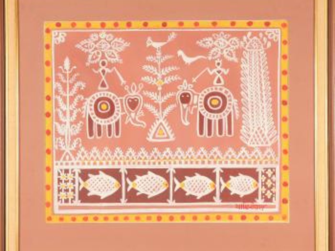 Composition with elephants, fish, and birds by Jamini Roy