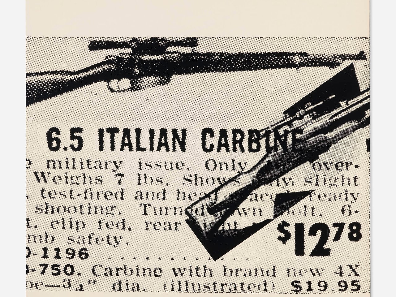Estate of Andy Warhol and Andy Warhol Visual Arts Foundation stamps to verso. This work is a unique trail proof apart from the edition of 200 printed by Aetna Silkscreen Products, Inc., New York and published by Racolin Press, Inc., Briarcliff Manor, NY.