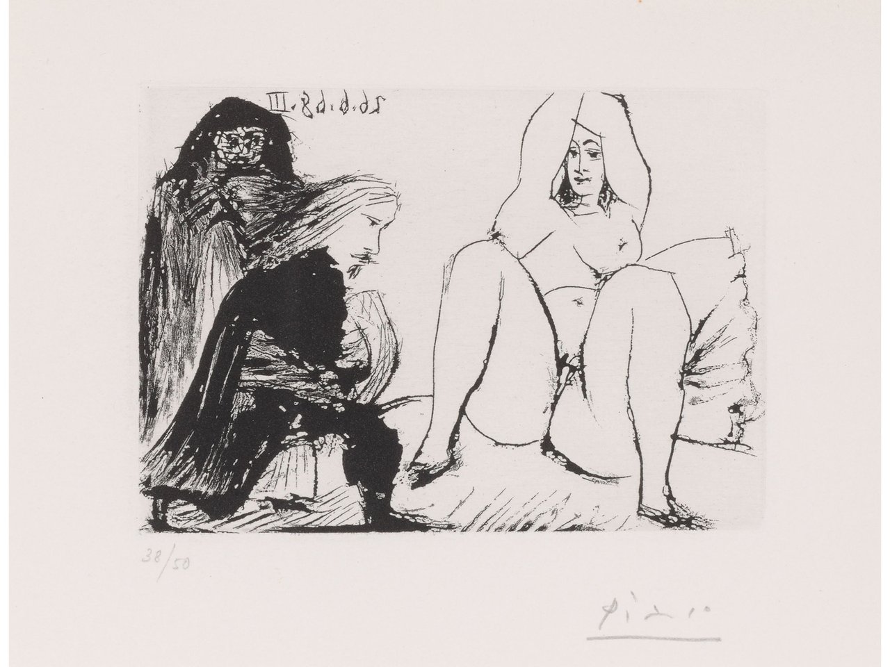 La Célestine, sa protégée, et un jeune gentilhomme, from Séries 347 (Bloch 1670, Baer 1686) by Pablo Picasso