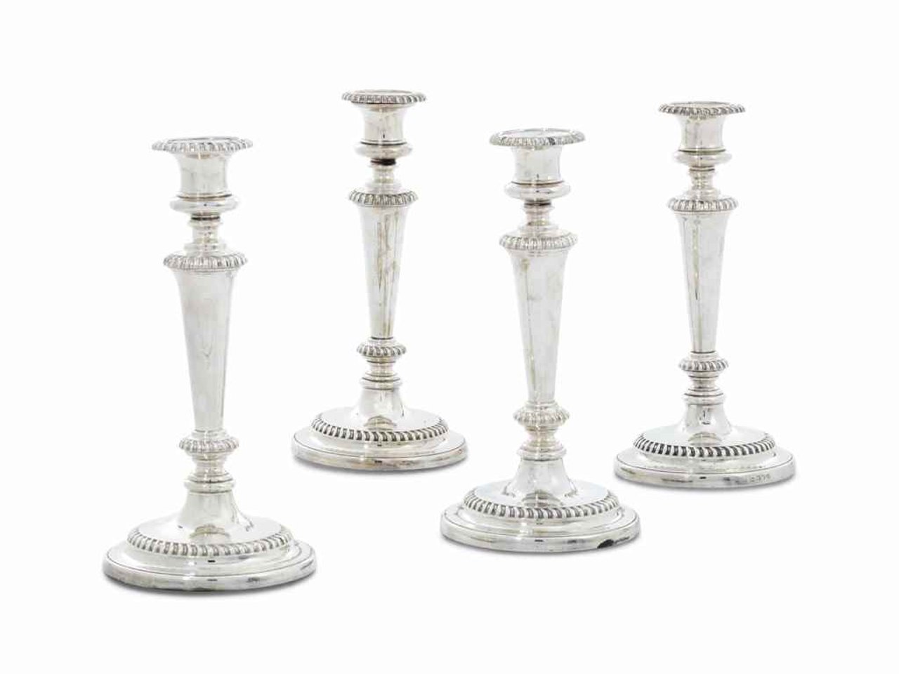 TWO PAIRS OF GEORGE III SILVER CANDLESTICKS by Anonymous