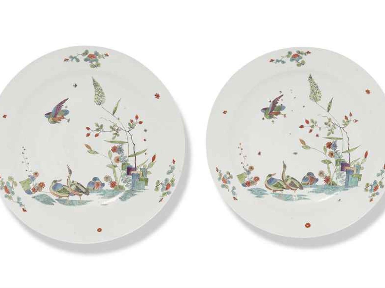 A PAIR OF MEISSEN FAMILLE VERTE PALETTE LARGE DISHES by Anonymous