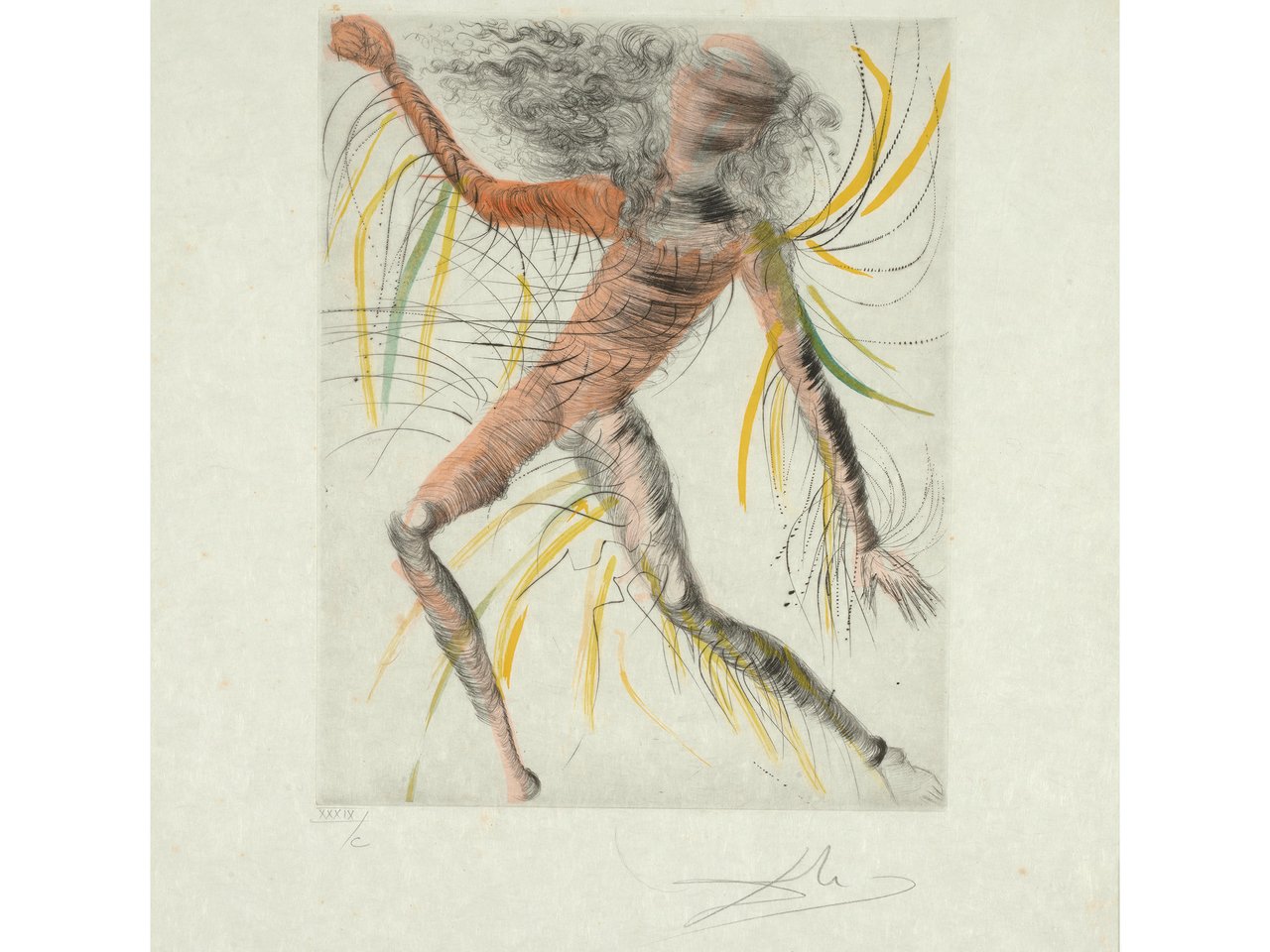 Etching with hand-coloring on japon nacré paper, signed in pencil and numbered XXXIX/C (the total edition was 245 plus proofs), published by Graphic Europa Anstalt, Switzerland, with full margins, framed.
