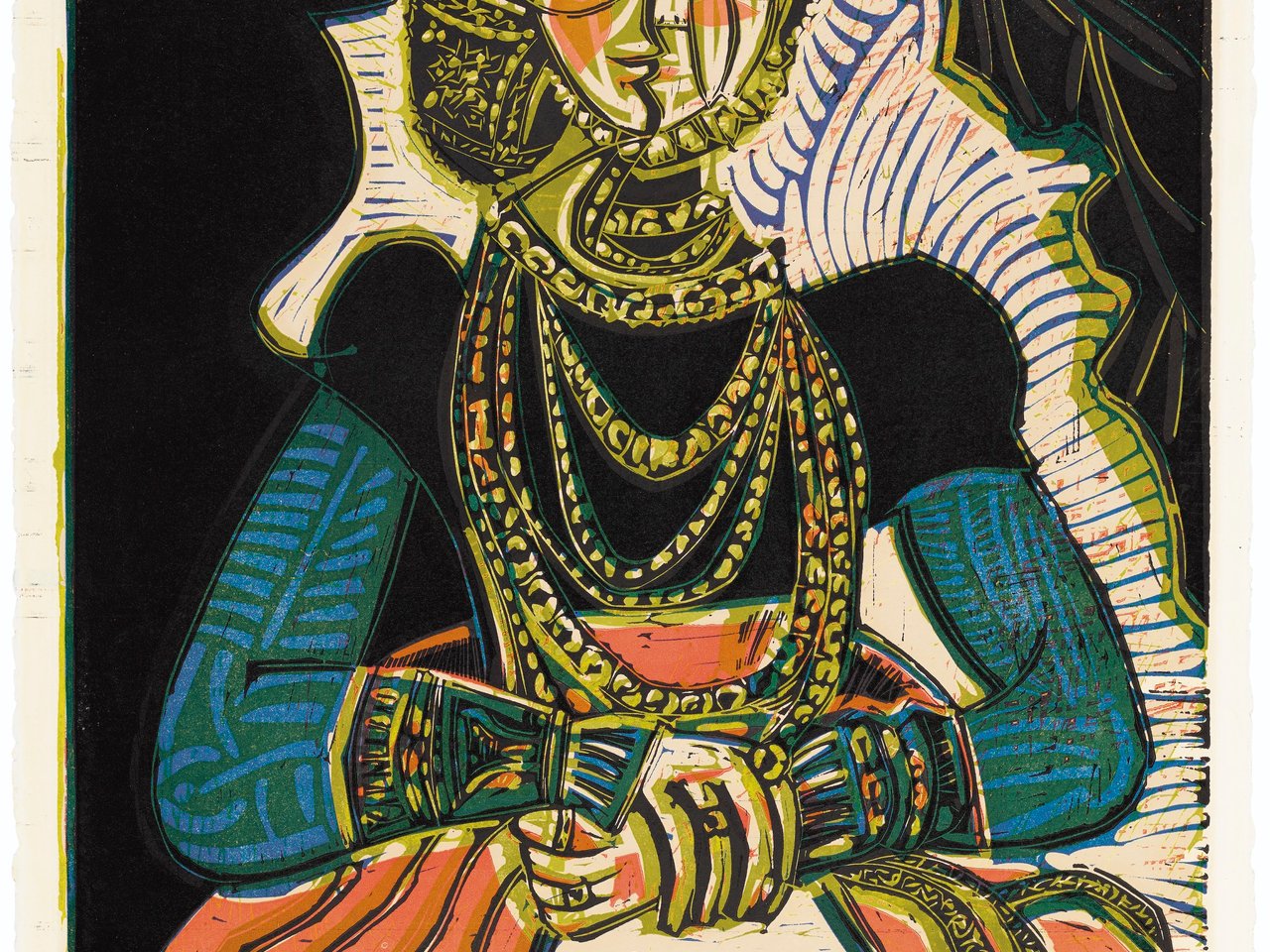 linocut in colors, on Arches paper, with wide margins