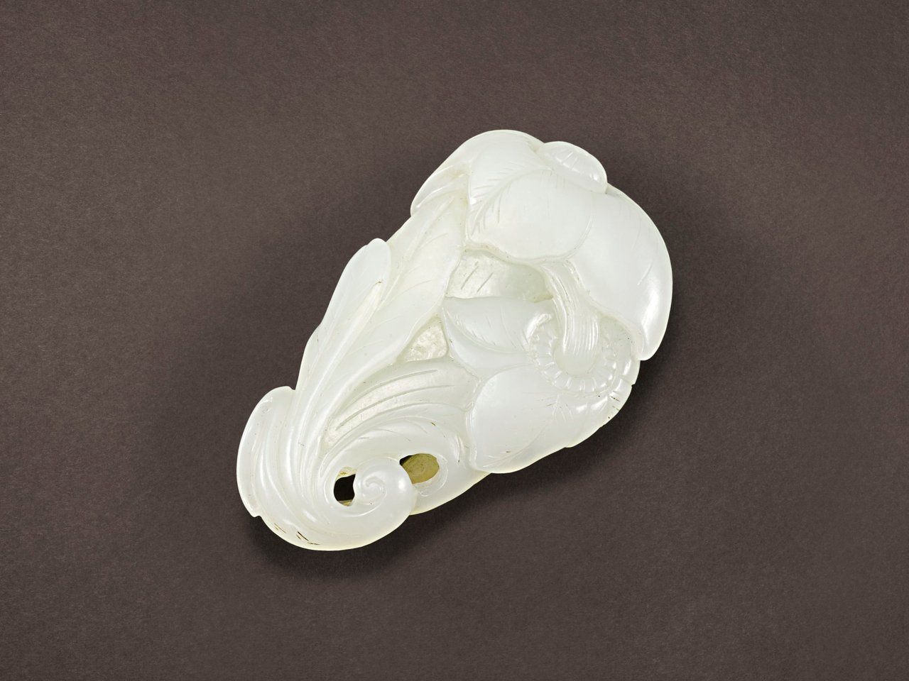 A WHITE JADE CARVING OF A TRUMPET VINE by Anonymous