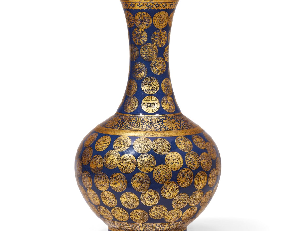 A GILT-DECORATED BLUE-GROUND BOTTLE VASE by Anonymous
