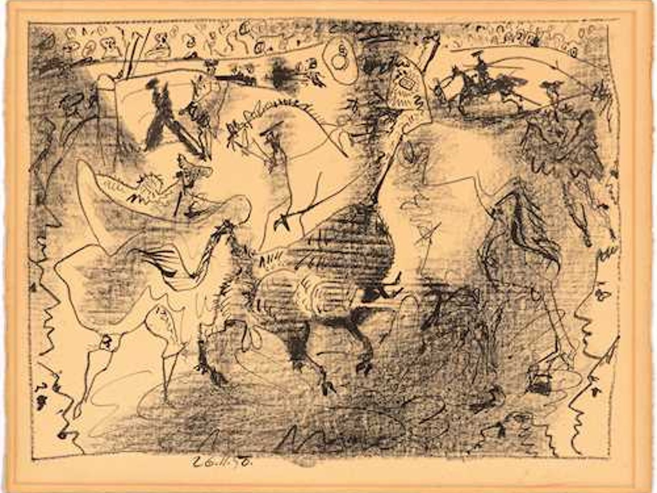 Lithograph. 44/50. Signed in red coloured pen lower right (faded) : Picasso, also dated in the stone lower centre: 26.11.50. Image 45.6 × 60 cm on wove paper by Arches 50 × 65.5 cm.