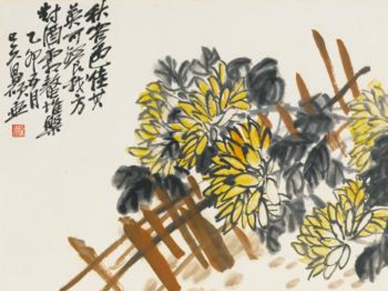Chrysanthemums on A Fence by Wu Changshuo