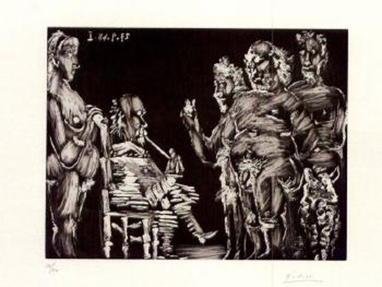 Trois vieux copains en viste, Monsieur fume by Pablo Picasso