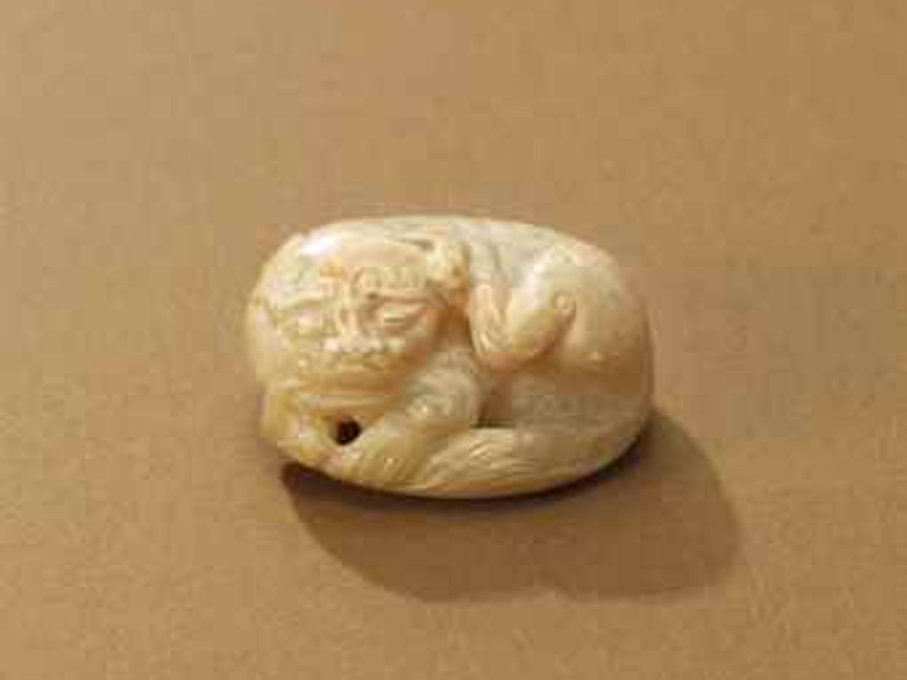 A YELLOWISH CELADON JADE CARVING OF A RECUMBENT FELINE by Anonymous