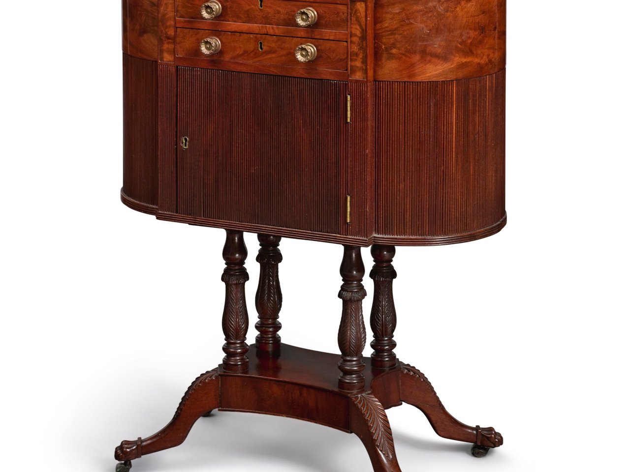Classical Carved and Figured Mahogany Work Table by Anonymous
