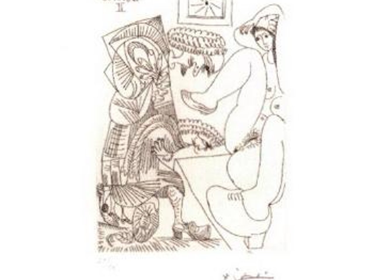 Jeune femme montrant son sexe a deux courtisans by Pablo Picasso
