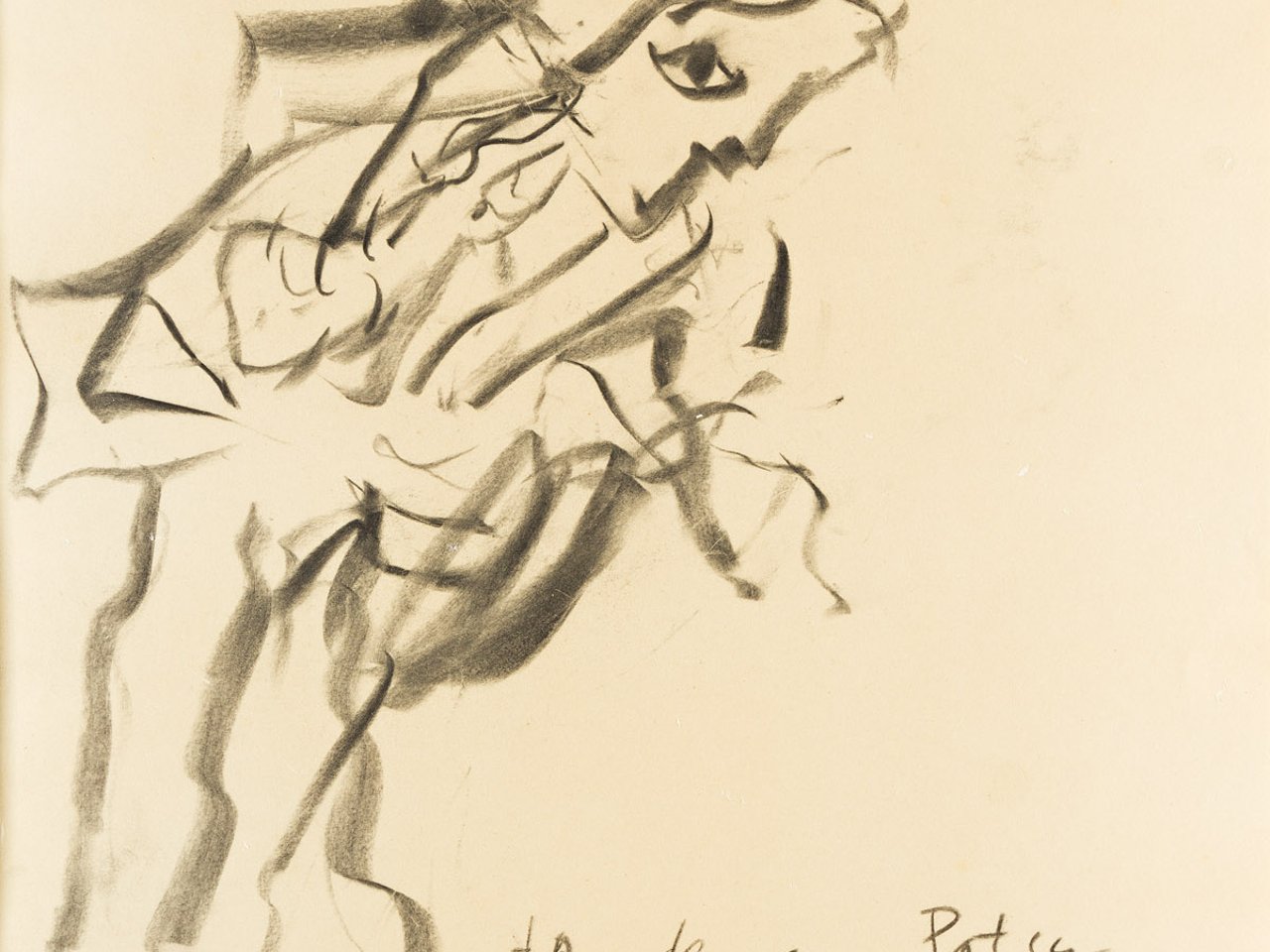 Charcoal on light tan wove paper, circa 1965-70. 522x403 mm; 20 3/4x16 inches. Signed and dedicated in pencil, lower recto.