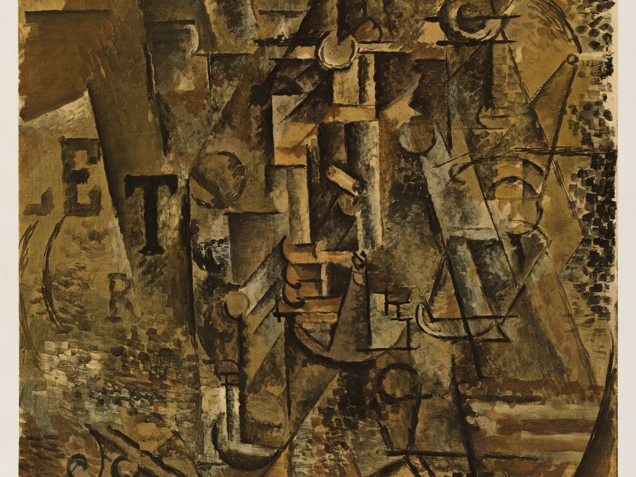 Based on the same-titled oil painting now in the Metropolitan Museum of Art, New York (Jacques and Natasha Gelman Collection, 1998, accession number 1999.363.63). This painting, created during the summer of 1911 in the French Pyrenees town of Céret, dates from Picasso's (1881-1973) most abstract phase of Cubism, known as "high" Analytic Cubism. Indeed, it is difficult to decipher the bottle of rum alluded to in the title. This is one of the first works in which Picasso included letter forms. Visible on the left hand side of the composition, the letters LETR might refer to the popular bullfighting magazine Le Torero , which Picasso as an avid fan surely would have known, or perhaps they are simply a pun on the French "lettre" or "word."