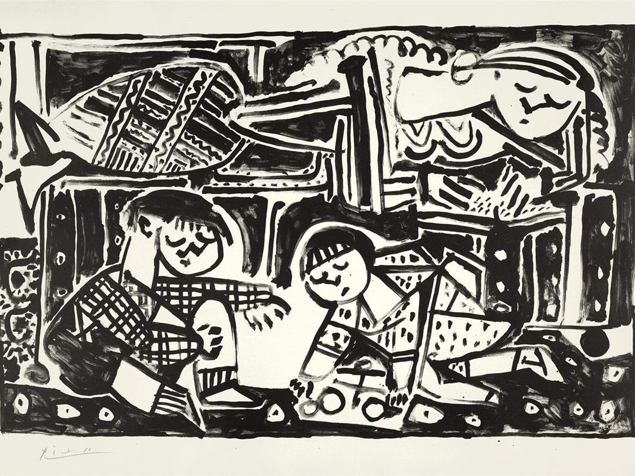 Among Picasso's (1881-1973) most expressive works are his oeuvre of lithographs, which allowed the artist to see his own evolution of technique and revise compositions easily. Though Picasso had produced a few lithographs in his early career, it was not until he began his partnership with Mourlot Frères, Paris in November 1945 that the artist rediscovered the medium that he would re-invent. Picasso would challenge the Mourlot printshop with his designs, which sometimes incorporated collage elements and even fingerprints. However demanding, the collaboration would culminate in over 400 prints in 20 years. Picasso was in a state of constant revision and the majority of his lithographs have multiple states, some more than ten. The progressions show Picasso's mind at work even with only the subtlest reworkings. He would work for long stints at a time at his lithographs and he would eventually lay claim to a corner of the Mourlot workshop, a refuge from his own notoriety.