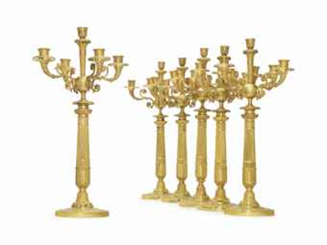 A SET OF SIX FRENCH ORMOLU FIVE-LIGHT CANDELABRA by Anonymous