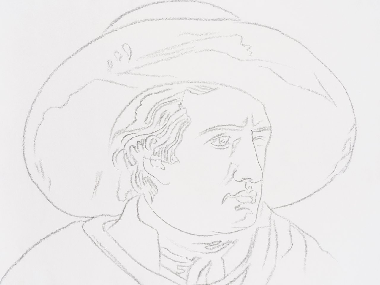 • The star of American Pop Art portrays an icon of world literature. • His portraits of celebrities are among Andy Warhol"s most famous works. • Warhol based the present portrait on J. H. W. Tischbein"s 1787 painting on display at the Städel Museum. He became acquainted with the painting on a visit to Frankfurt in 1980. • Warhol rendered the motif with clear, bold lines in an almost life-size drawing. • Intentional rather than spontaneous: The drawing does not have the fleeting quality of a swiftly jotted sketch. Instead, it results from an intensive examination of Warhol"s artistic ideas. • He would later work with the motif in large-format depictions on canvas and a famous series of serigraphs. Jörg Schellmann (ed.), Andy Warhol. Unique, Munich 2014, p. 64 (illustrated). Called up: December 7, 2024 - ca. 17.22 h +/- 20 min.