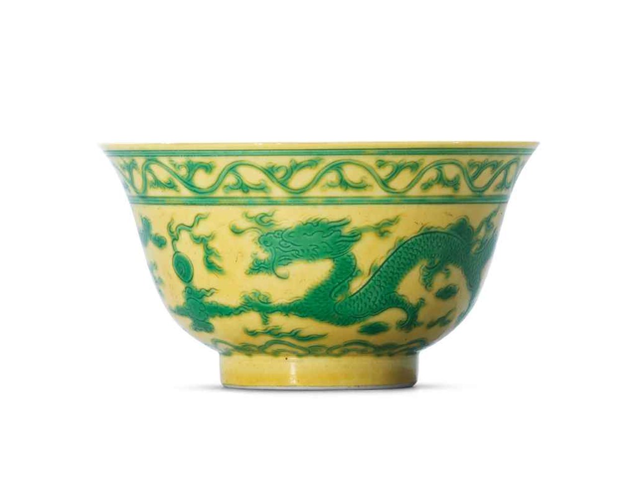 A YELLOW-GROUND GREEN-ENAMELLED 'DRAGON' BOWL by Anonymous