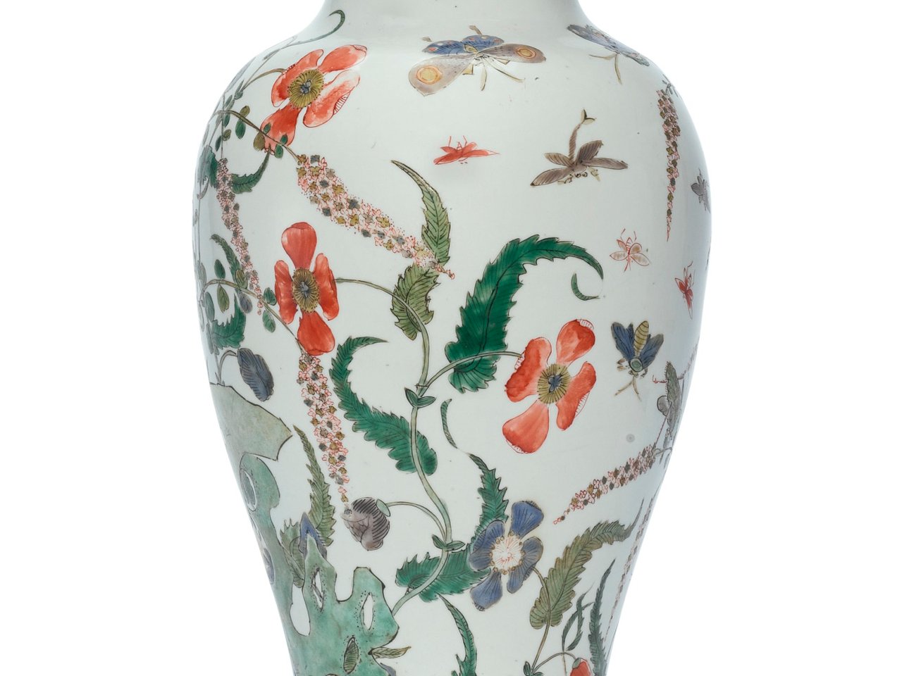 A FAMILLE-VERTE 'WILD FLOWERS AND INSECTS' BALUSTER VASE