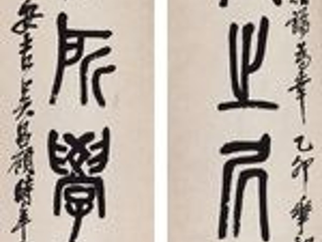《篆书十言联》系吴昌硕为其儿女亲家杨兆鋆(1854-?)所书。杨兆鋆是清末外交官,字诚之,号须曼居士、须圃,吴昌硕曾为其篆“须圃”匾额。与吴昌硕同为浙江湖州人。光绪十年(1884),杨兆鋆随许景澄公使出洋,归国后被以道员身份发江苏补用。曾担任过金陵同文馆教习、江南储材学堂督办、出使比利时钦差大臣。杨精通书法与算术,吴昌硕曾为其小楷《金刚般若波罗蜜经》题端。