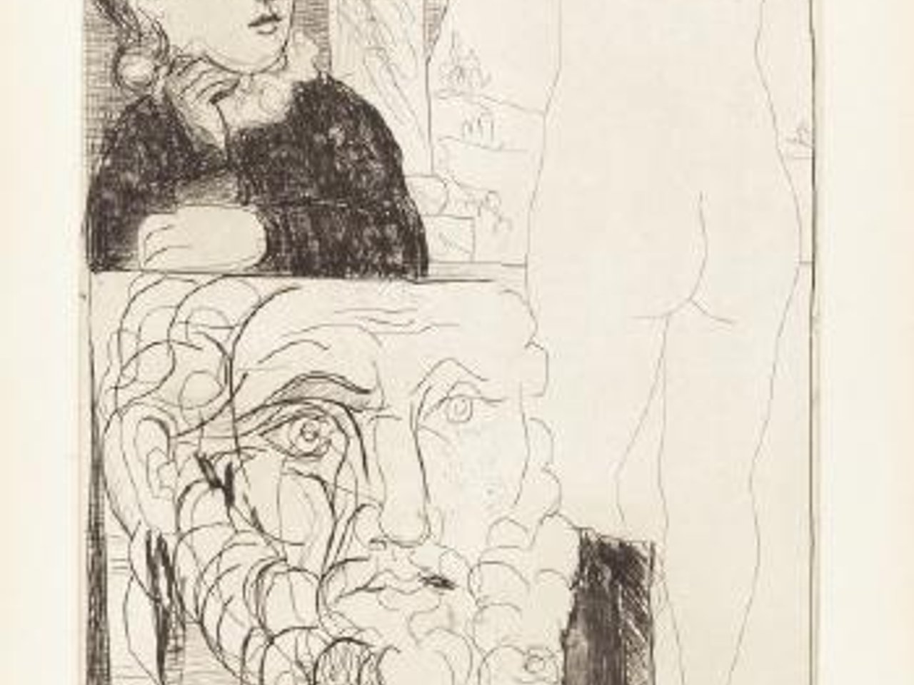 Femme accoudée, Sculpture de Dos et tête barbue (from La Suite Vollard)