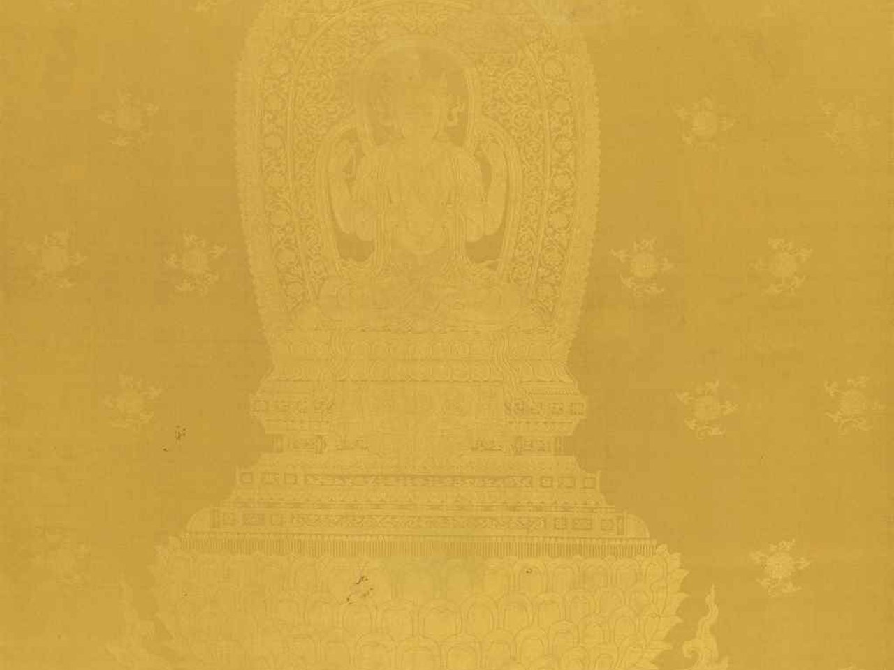 A RARE IMPERIAL YELLOW SILK DAMASK PANEL OF AVALOKITESVARA by Anonymous