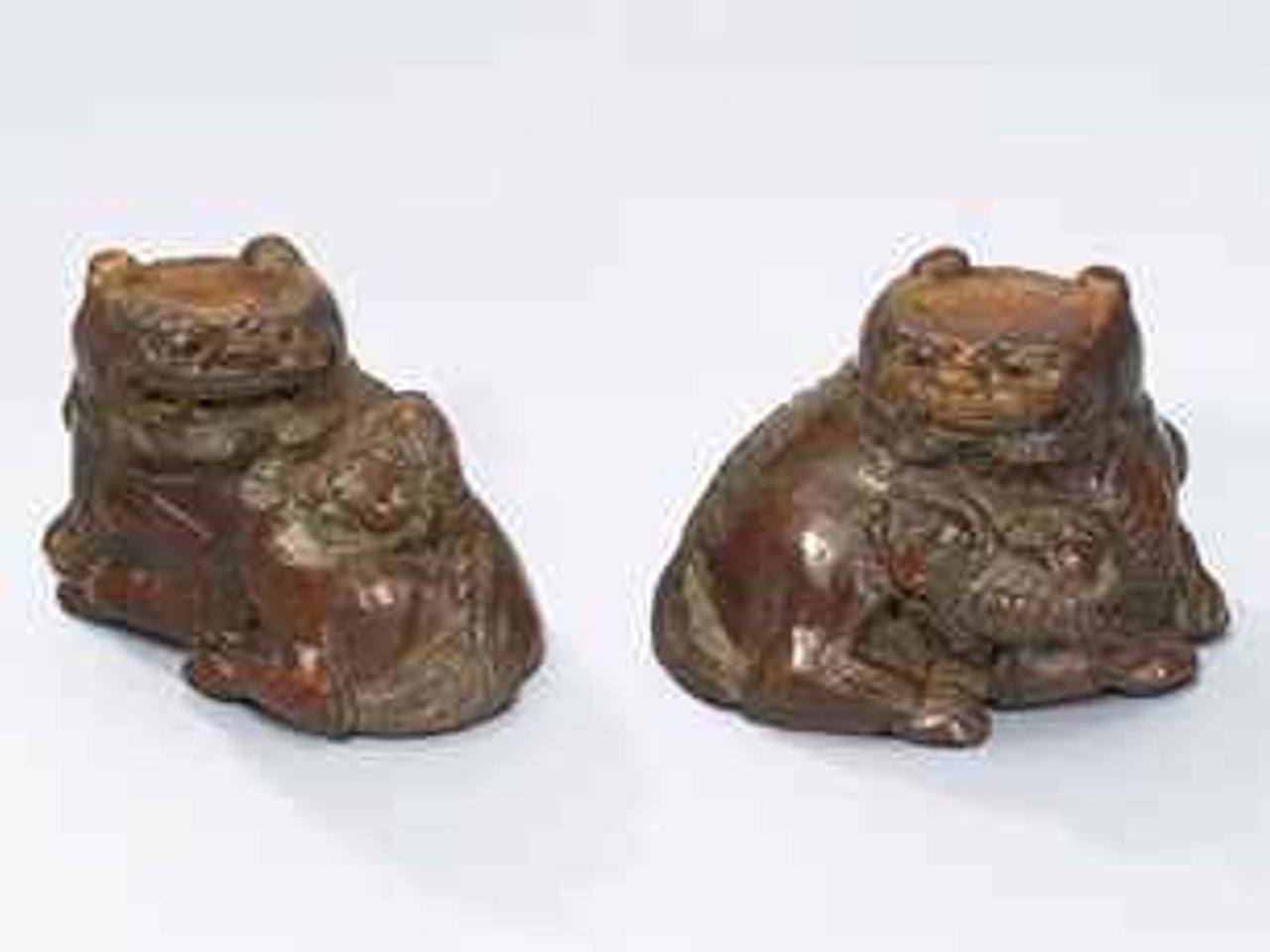 A PAIR OF CARVED BAMBOO 'LIONS' CUPS by Anonymous