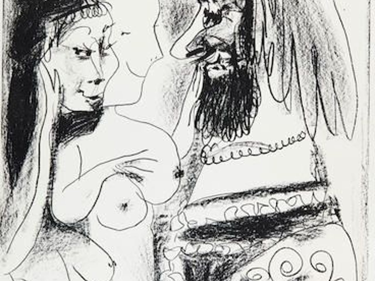 Lithograph on Arches paper, with the artist's red ink stamped signature, from the edition of 1,000 (aside from the signed and numbered edition of 200), with the watermark of the printer, Mourlot, Paris, with full margins.