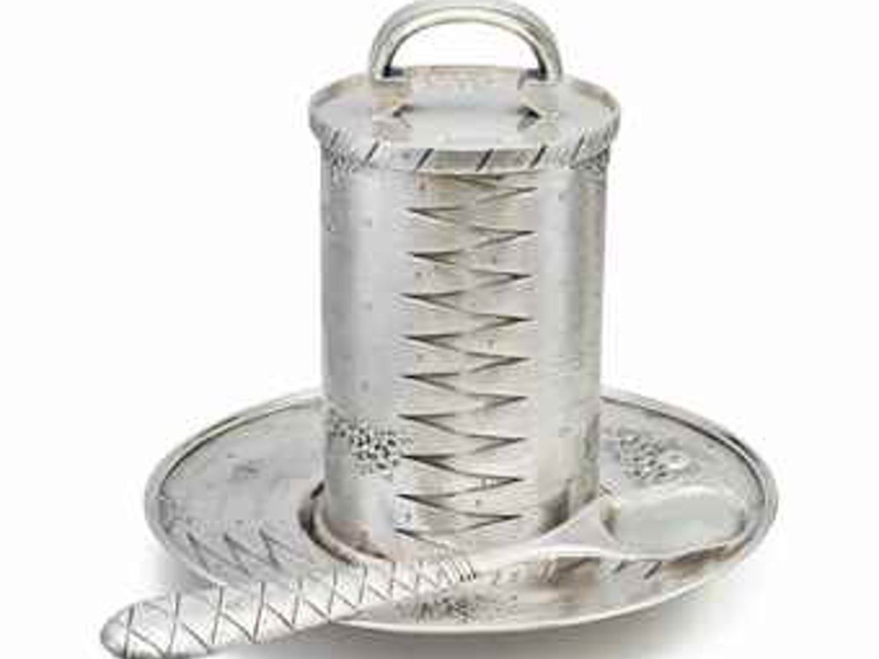 A RUSSIAN SILVER TROMPE L'OEIL CAVIAR SET by Anonymous