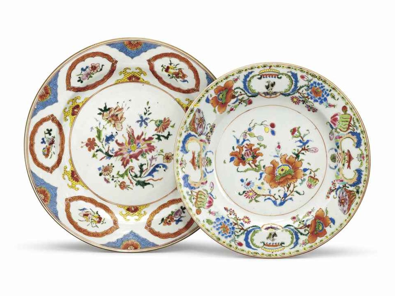 A PRONK TYPE FAMILLE ROSE DISH AND A 'POMPADOUR' PLATE by Anonymous