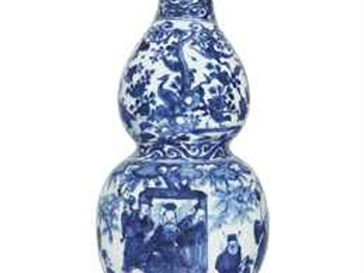 A RARE LATE MING BLUE AND WHITE DOUBLE-GOURD WALL-VASE by Anonymous
