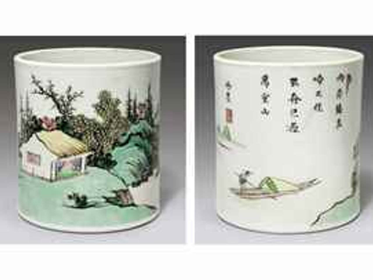 A SMALL FAMILLE VERTE BRUSH POT by Anonymous
