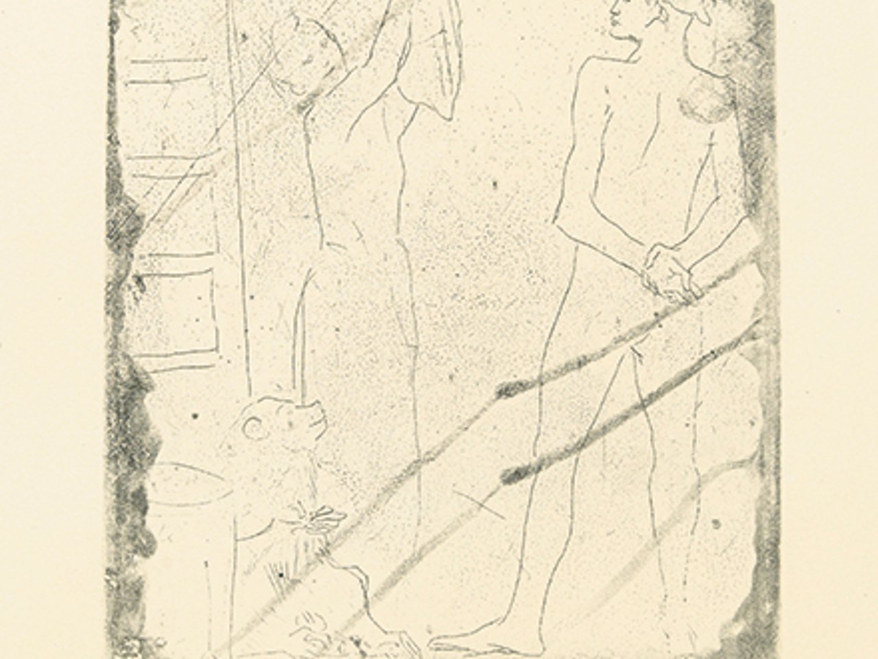 Drypoint, 1905. 236x178 mm; 9 3/8x7 inches, full margins. Edition of 250. Printed by Louis Fort, Paris. Published by Vollard, Paris. From the Saltimbanques suite. A very good impression of this scarce print.