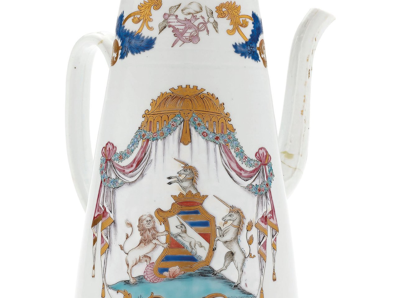 A LARGE ARMORIAL COFFEE POT AND COVER by Anonymous