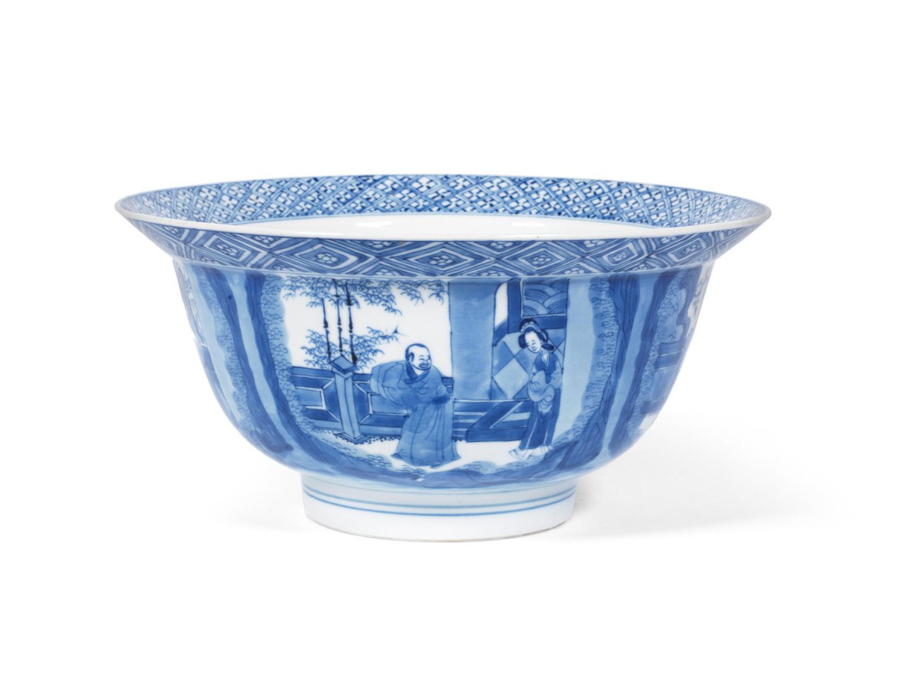 A blue and white 'Romance of the Western Chamber' bowl by Anonymous