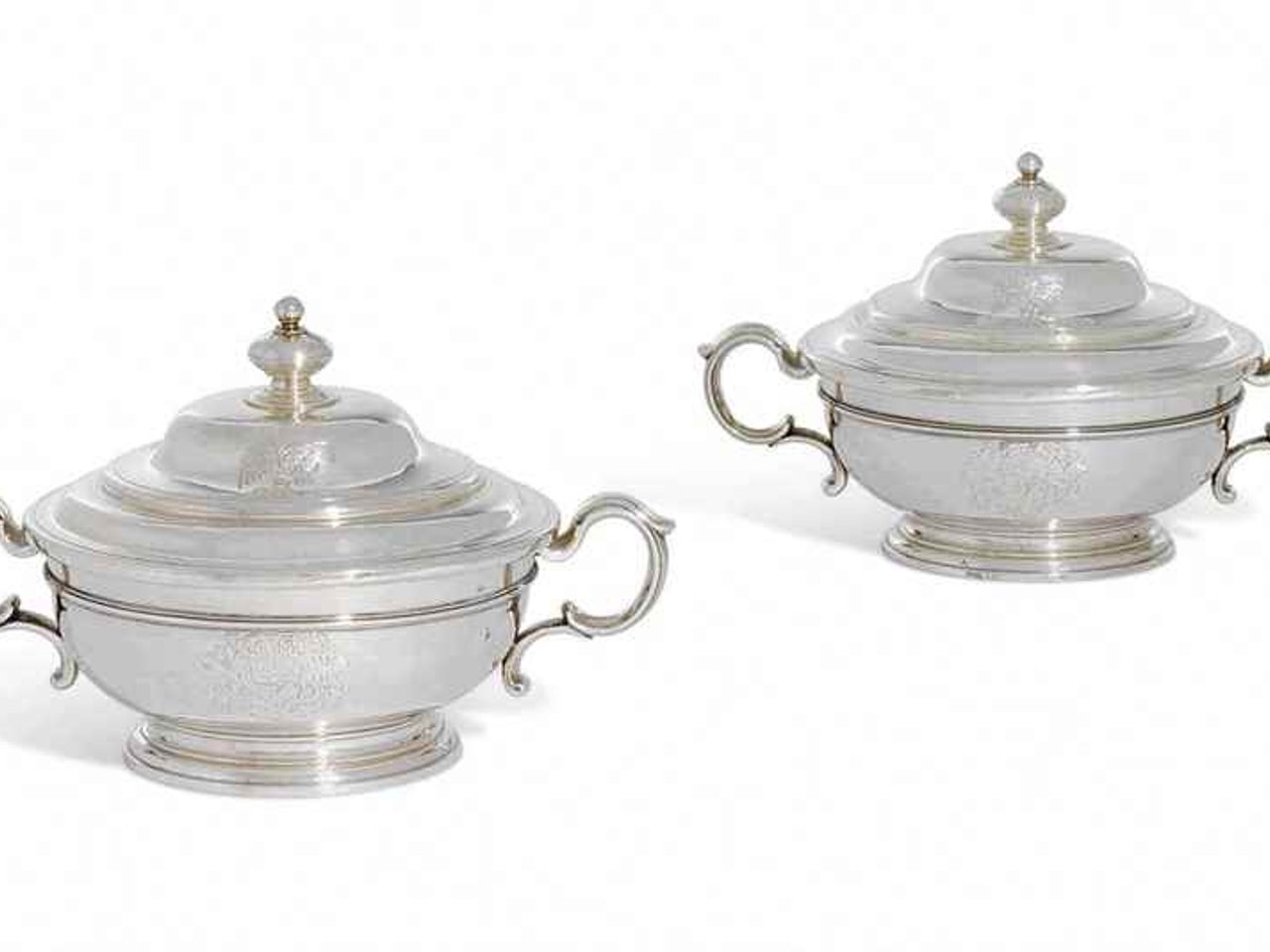A PAIR OF QUEEN ANNE SILVER BOWLS AND COVERS by Anonymous